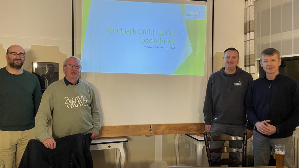 Vortrag von Maik Brünig, Stephan Meyer, Cord Remke und Michael Buchtmann zum Thema „Beteiligung der EGH am Windpark Beckeln“ am 13.03.2025 in der Wasserburg